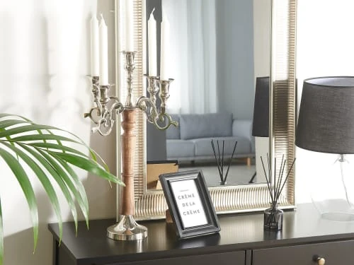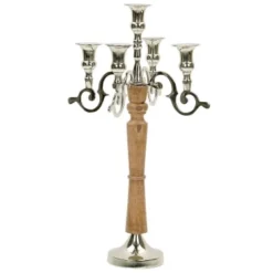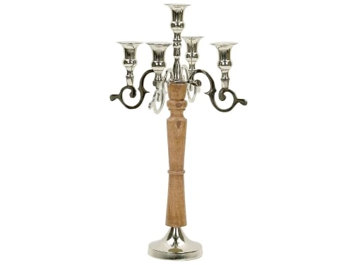 Beliani Bougeoirs Chandelier 5 Branches En Bois Et Aluminium Argenté