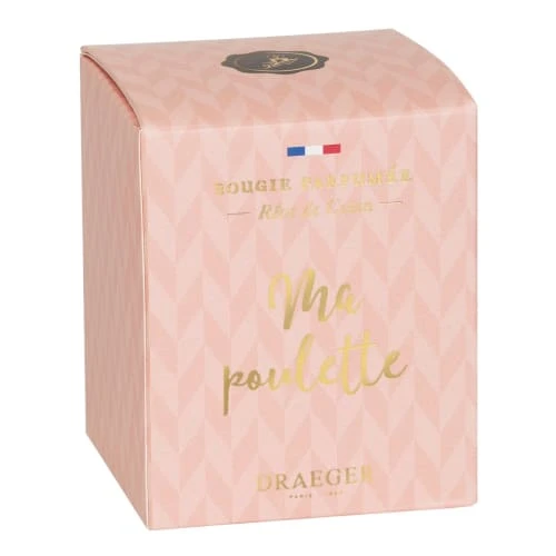 Message inscrit sur l’étiquette de la bougie : Ma poulette.