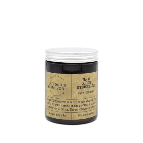 Notre gamme de bougies est créée à partir de la figue, un fruit sucré et emblématique pour une note suave et gourmande. Nous y avons ajouté de l’edelweiss. Cette jolie fleur originaire des hauts plateaux de montagnes offre un parfum frais et délicat qui finalise notre gamme Figue Éternelle.