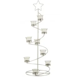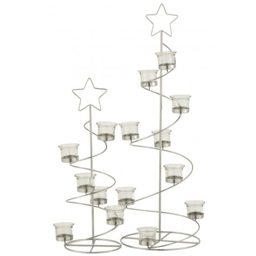 LANADECO Bougeoirs PHOTOPHORE ARBRE SPIRALE METAL / VERRE ARGENT 70 Cm