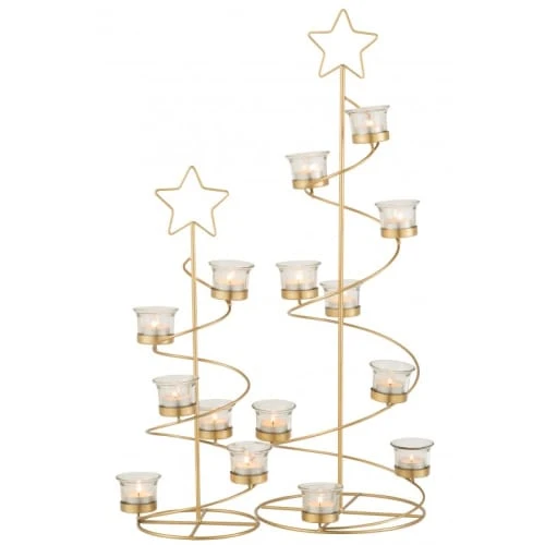 LANADECO Bougeoirs PHOTOPHORE ARBRE SPIRALE METAL / VERRE OR LARGE 70 Cm