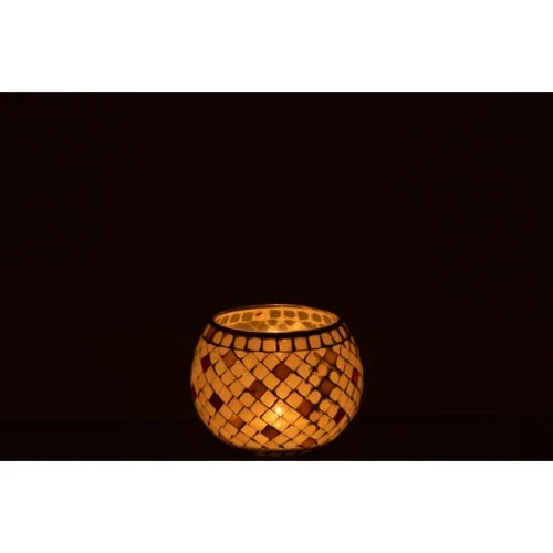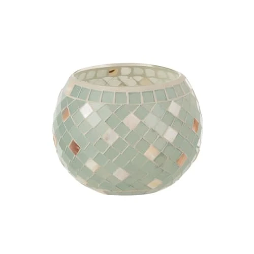 LANADECO Bougeoirs Photophore Rond Mosaïques Verre Gris/nacre H12cm