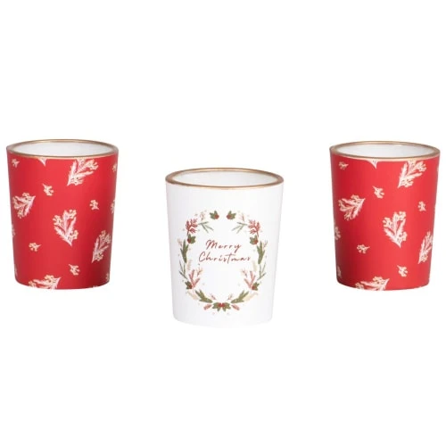 Maisons Du Monde Décorations Lumineuses De Noël Coffret Mini Bougies Parfumées (x3) En Verre Rouge à Motifs Blancs 135g