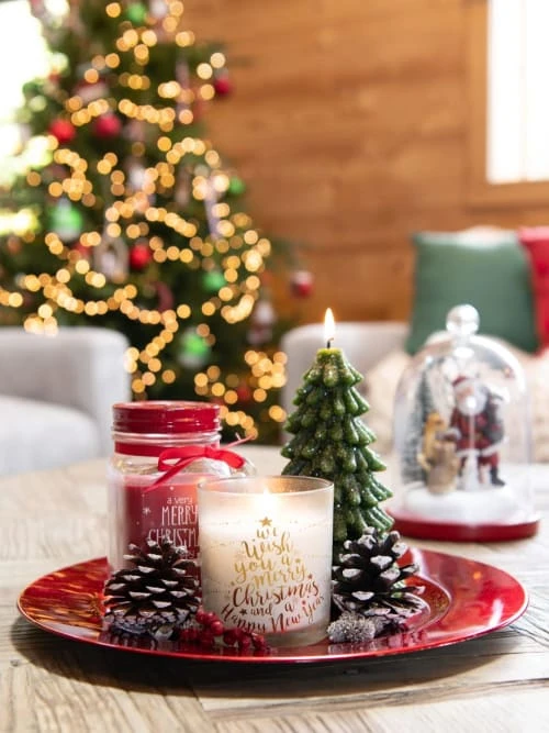 Maisons Du Monde Décorations à Poser De Noël Bougie De Noël Sapin Vert à Paillettes