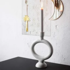 Madam Stoltz Bougeoirs Bougeoir En Grès Blanc