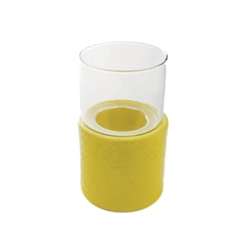 Photophore cylindrique et allongé au motifgéométrique.Disposez une bougie à l’intérieur de la gamme ANTIK ou STRIPE. Ce photophore au style ethniqueet printanierdonnera du relief à votre décoration.La base est en grès coloré permet de surélever votre bougie située en haut dans le verre transparent.Compatible avec nos bougies ANTIK S de D7 cm