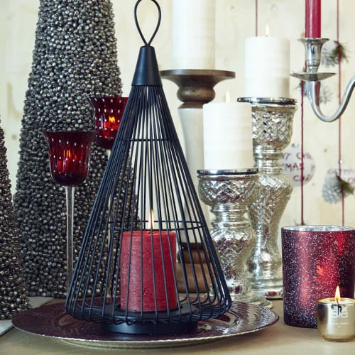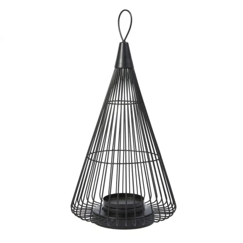 Photophore à suspendre en métal ajouré de couleur noir.Ce photophore coniquepermettra d’éclairer votre intérieur de manière tendance avec une pointe de poésie. Il se fondra parfaitement dans une décoration design. Compatible avec nos bougieschauffe-plat.